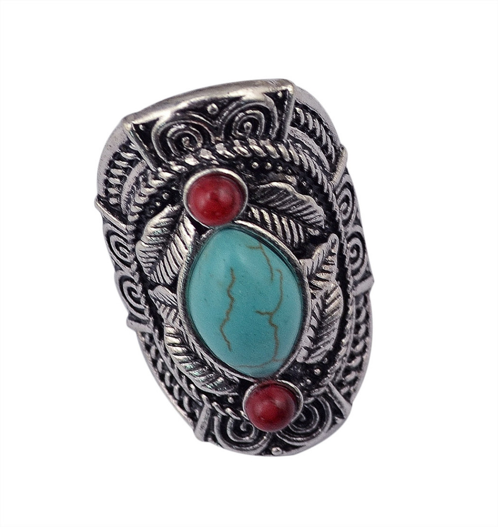 Product:Boho Ethnic Tibet Turquoise Rings For Women Men Retro Silver Color Adjustable Carved Gypsy Tribal Pakistan Afghan Indian Jewelry